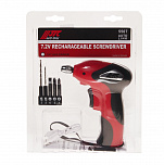 Максимальный крутящий момент 14,7 Н/м. Емкость аккумулятора 1 А/ч. Обороты 265 об/мин. Лёгкий вес и прорезиненная ручка. Аккумуляторная отвертка поставляется в наборе с битами, сверлами и USB проводом. Встроенный светодиодный фонарь для работы при низкой освещенности. Зарядка устройства происходит за 2,5 часа.