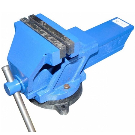 Тиски слесарные поворотные 0°-360° с наковальней. Материал: чугун СЧ20 (серый чугун) ГОСТ 1412-85. Губки сменные 160 мм. Ход 155 мм. Зажим 5000 кгс. Вес: 27 кг. Габариты:460x230x210 мм. Сделано в Белоруссии.
