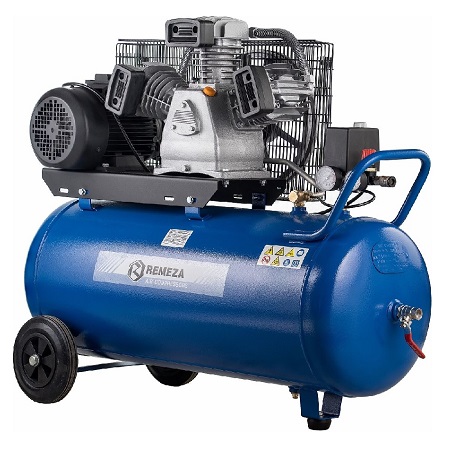 Воздушный поршневой компрессор REMEZA с ресивером 100 л, масляный, двухцилиндровый, мощностью 2,2кВт, Напряжение 220В. Производительностью 400 л/мин с коаксиальным приводом применяется в строительных, автосервисных и медицинских работах.