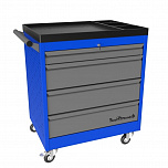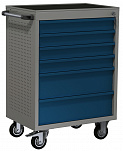 5 ящиков. Для хранения инструмента в ЕВРОЛОЖЕМЕНТАХ. Боковые панели с перфорацией (для установки аксессуаров). Цельносварная конструкция корпуса тележки. Центральный замок Euro-Lock. Шариковые направляющие полного выдвижения. Размеры (высота x ширина x глубина): 850 х 700 х 460 мм. Вес: 55 кг.