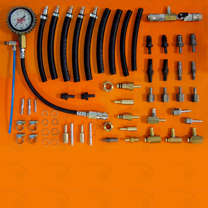 С помощью данных наборов диагностика топливных систем проводится в любых точках топливной магистрали, во всей цепочки ее элементов: [вход в насос] - [насос] - [выход из насоса] - [подающая магистраль] - [вход в фильтр] - [фильтр] - [выход из фильтра] - [ топливная рейка] -[порт Шредера] - [ обратный клапан] - [ обратная магистраль] - [выход после обратного клапана] – [вход в бак].