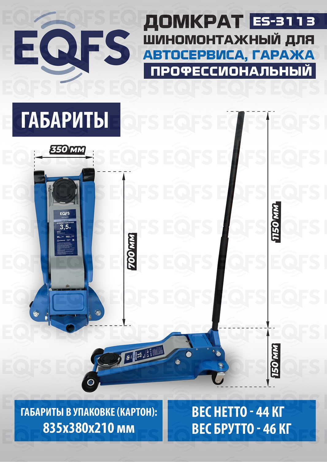 Технические особенности ES-3113 домкрата с низким подхватом 3,5 тонны: