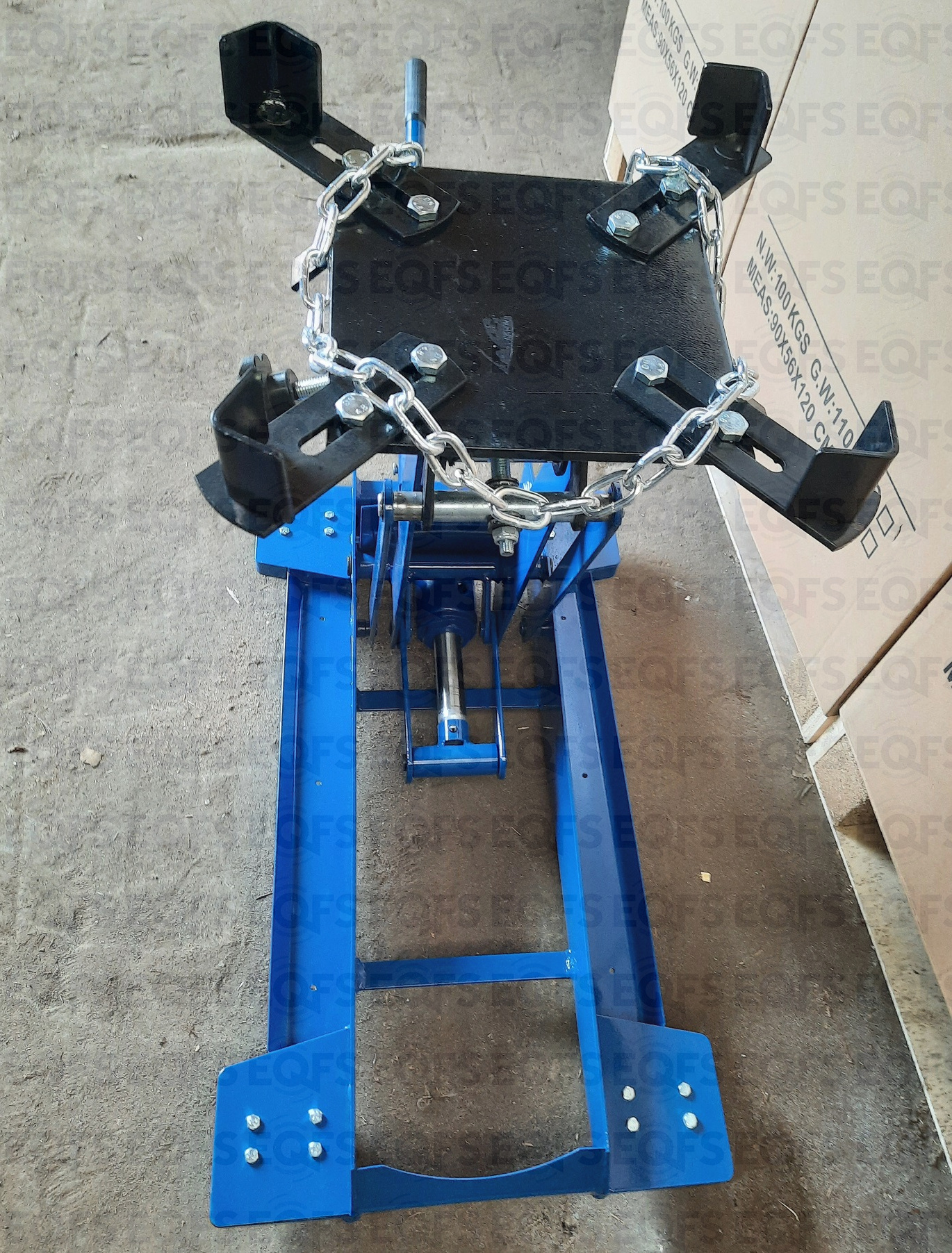 Трансмиссионная гидравлическая стойка (домкрат трансмиссионный) является мобильным подъёмным устройством. С ее помощью можно поднять и переместить снятый узел. При подъеме на требуемую высоту удобно монтировать снятый агрегат. Цвет темно-синий.