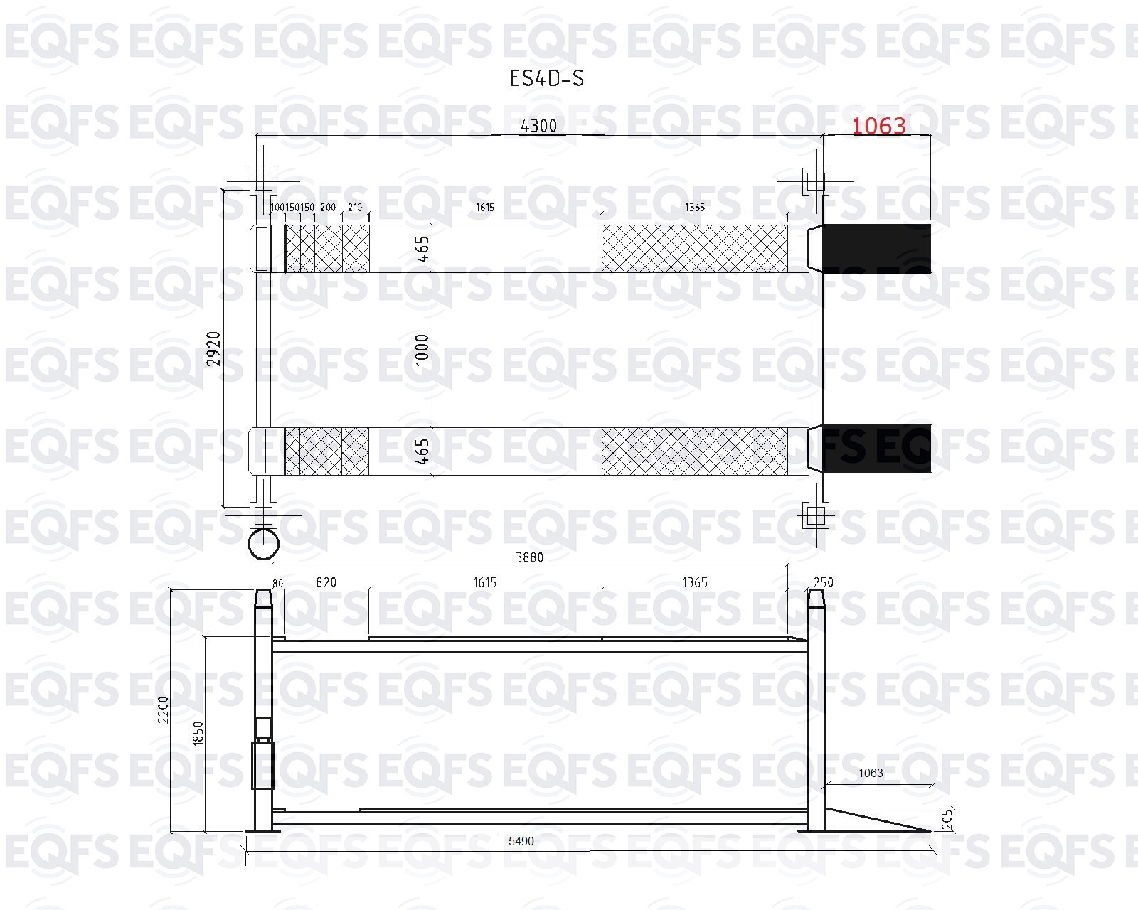 Подъемник ES4D-S : подходит для сход развала короткобазных автомобилей
