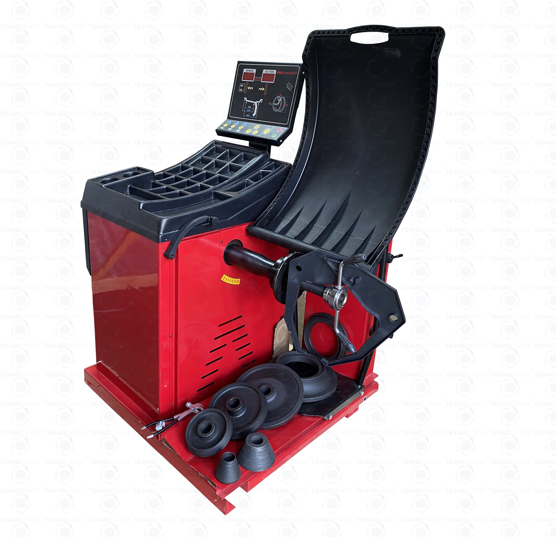 • Балансировочный станок оснащен защитным кожухом для защиты оператора от попадания частиц грязи из протектора покрышки.