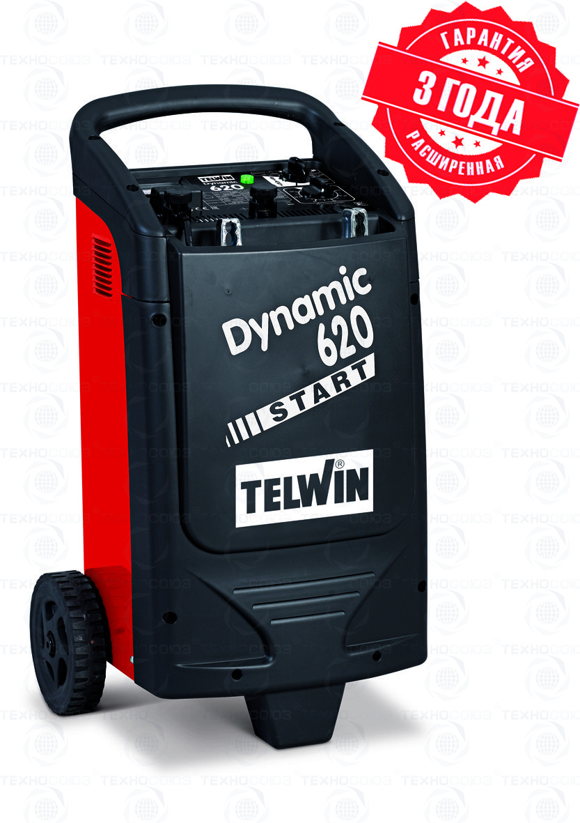 Пусковой ток 570А. Макс. мощность заряда/пуска – 2/10 кВт. Пуско-зарядное устройство Telwin Dynamic 620 относится к профессиональному оборудованию с высокими показателями мощности. 3 года гарантии. Сделано в ИТАЛИИ.