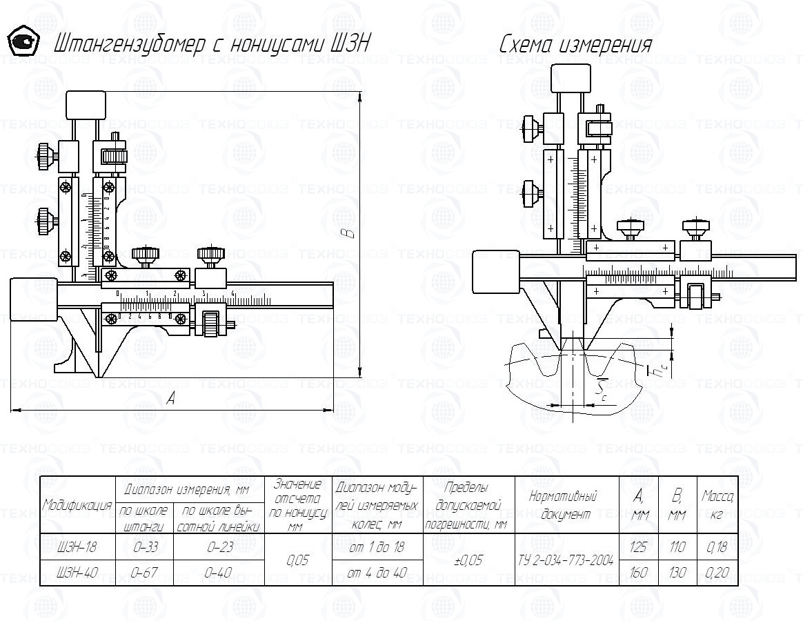 Цена деления 0,05 мм. Диапазон измерения по шкале штанги от 0-67 мм. Штангензубомер с нониусами ШЗН-40. Предназначен для измерения расстояния между разноименными боковыми поверхностями (толщины) зуба цилиндрических прямозубых и косозубых колес внешнего зацепления 11 и 12 степеней точности ГОСТ 1643-81 по постоянной хорде или по хорде делительной окружности. Поставляется в двух вариантах с поверкой и без поверки!