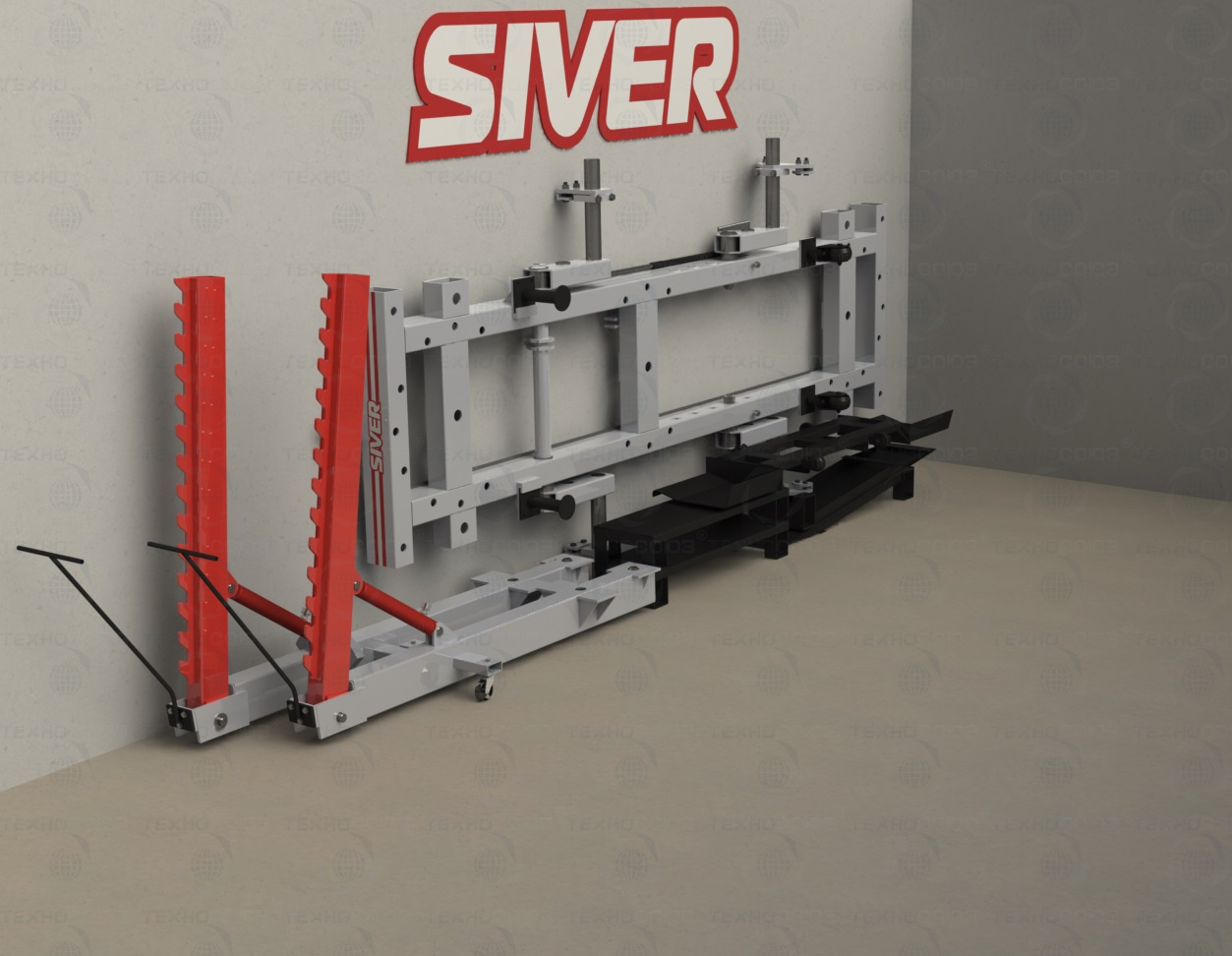 Рама стапеля SIVER B имеет сварную конструкцию и оптимальные размеры для правки кузовов легковых автомобилей. Оснащена двумя поворотными колесами, и двумя съемными стойками опорами в передней части. Стапель SIVER B является мобильным стендом, при помощи подкатного домкрата стапель легко перемещается по твердому покрытию.