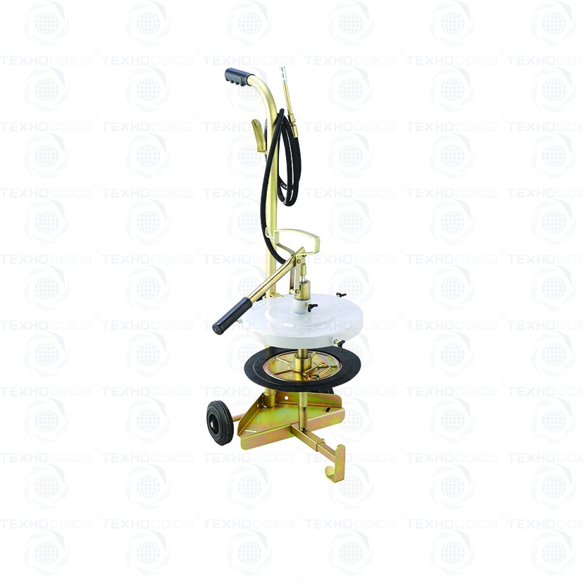 Нагнетатель смазки ручной (для густой и консистентной самзки). Комплект оснащен тележкой для бочек 20-60 кг., насос для смазки ручной производительностью 300 гр/мин, мембрана и крышка для солидолонагнетателя, шланг 4 м, раздаточный пистолет с наконечником. При давлении воздуха 6-8 Атм давление смазки 400 Атм максимально. Колёса: 2 прямых. Масса: 12 кг.