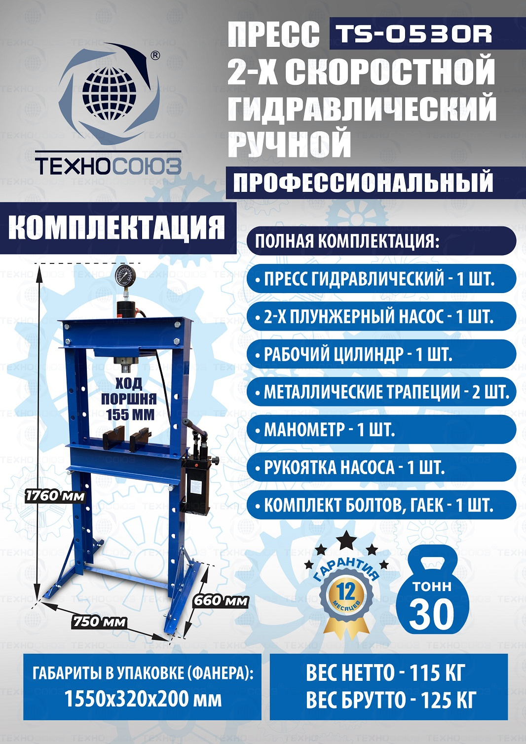 Технические особенности пресс 30 тонн гидравлический ручной TS-0530R: