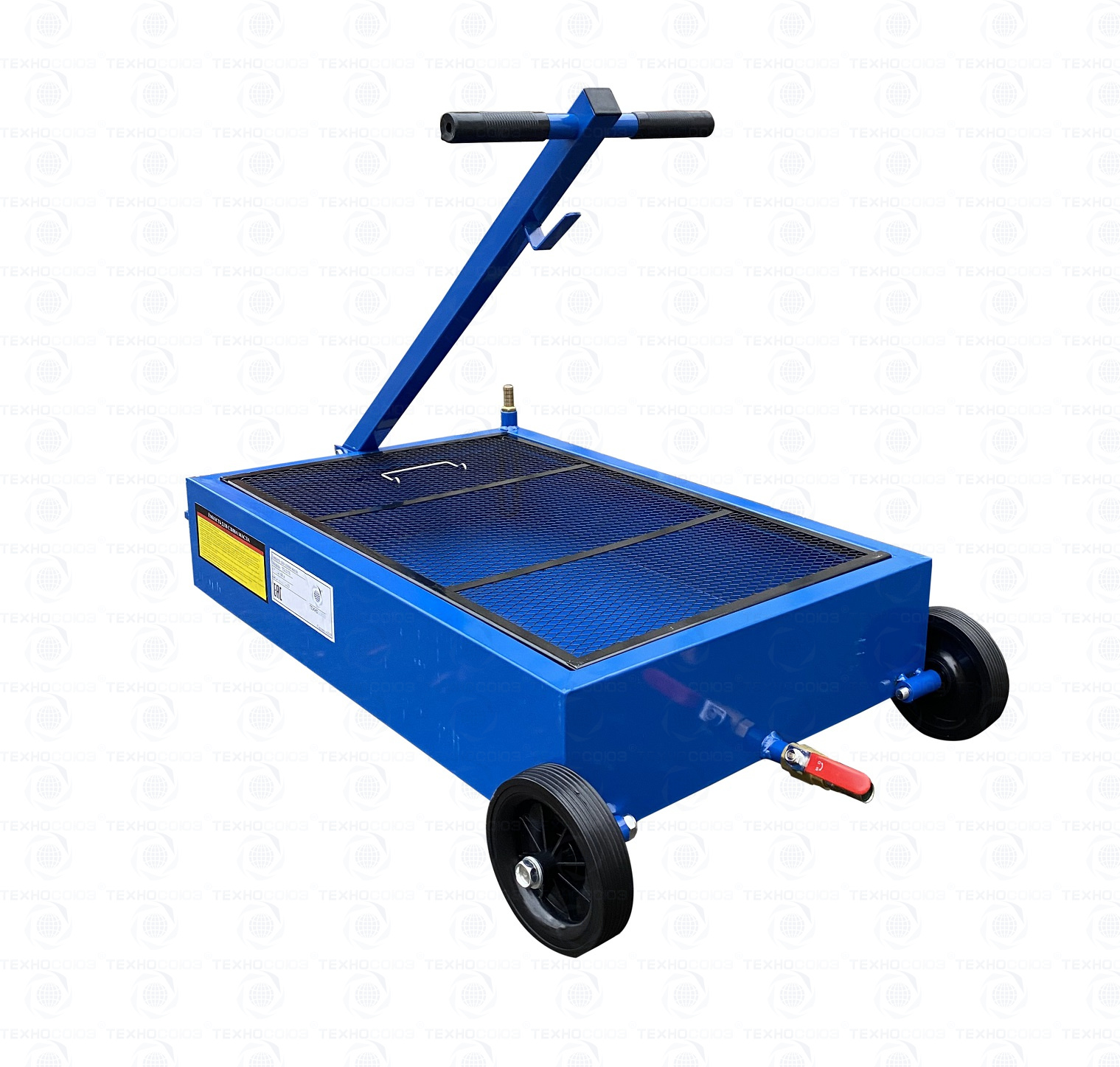 Подкатная. Ручная. Установка для слива отработанного масла 56л., антифризов из ДВС, КПП, мостов автомобилей, квадроциклов, грузовиков, тракторов с клиренсом от 190мм. Регулировка угла наклона рукояти 0˚÷150˚. Слив из установки в бочку самотеком. Сетка улавливает мелкие детали и предотвращает разбрызгивание.